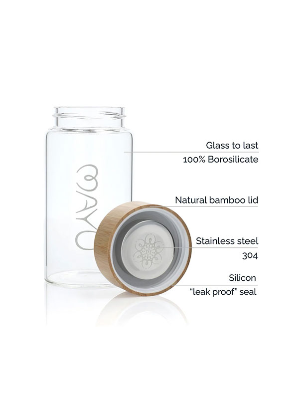 Each MAYU glass drinking bottle is carefully tested for safety, purity and durability. Whether at home, in the office or on the go, this bottle supports your health goals and looks elegant.