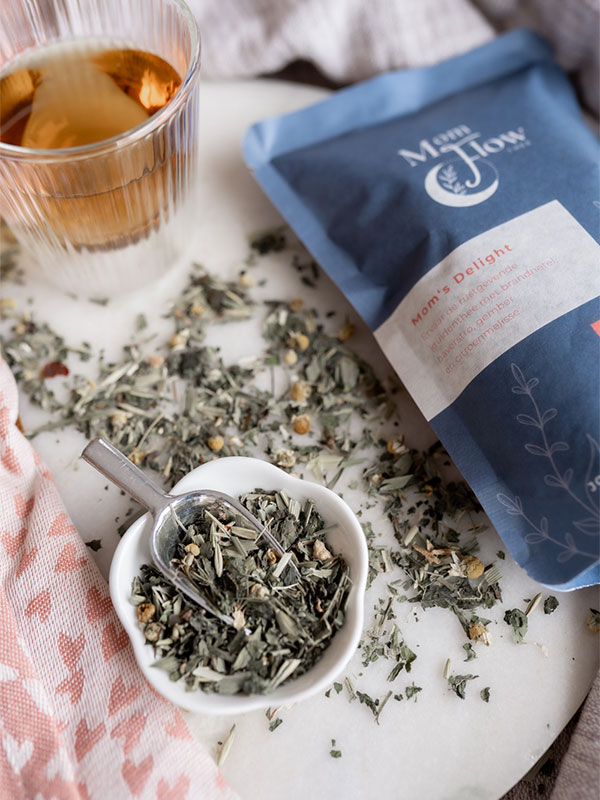Mom Flow Mom's Delight tea is a blend of natural herbs especially for women who want to relax and find balance during pregnancy.