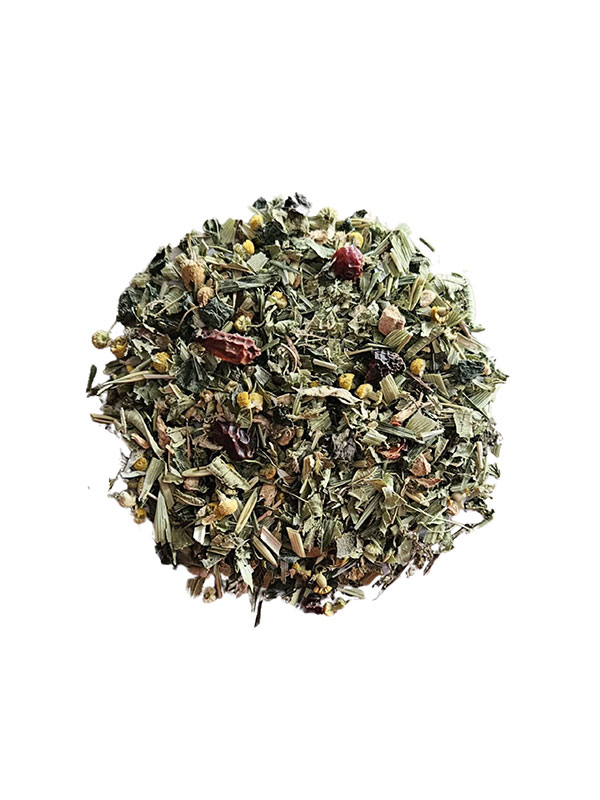 Nettle, oat straw, lemon balm, ginger, chamomile, rose hip