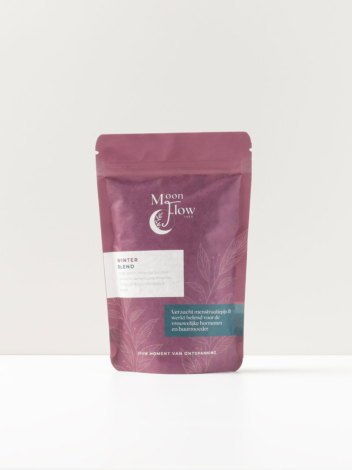 De Moon Flow Winter thee is een biologische blend van zorgvuldig geselecteerde kruiden. Deze kruidenthee is speciaal samengesteld om bij te dragen aan het behoud van de natuurlijke balans van vrouwen. De winter blend heeft dezelfde basis ingrediënten als de Moon Flow Original thee, er zijn alleen wat extra kruiden aan toegevoegd voor een winterse smaak. Perfect tijdens de koudere dagen. De thee wordt geleverd in losse vorm, zodat je eenvoudig je eigen heerlijke kop of pot kruidenthee kunt bereiden.